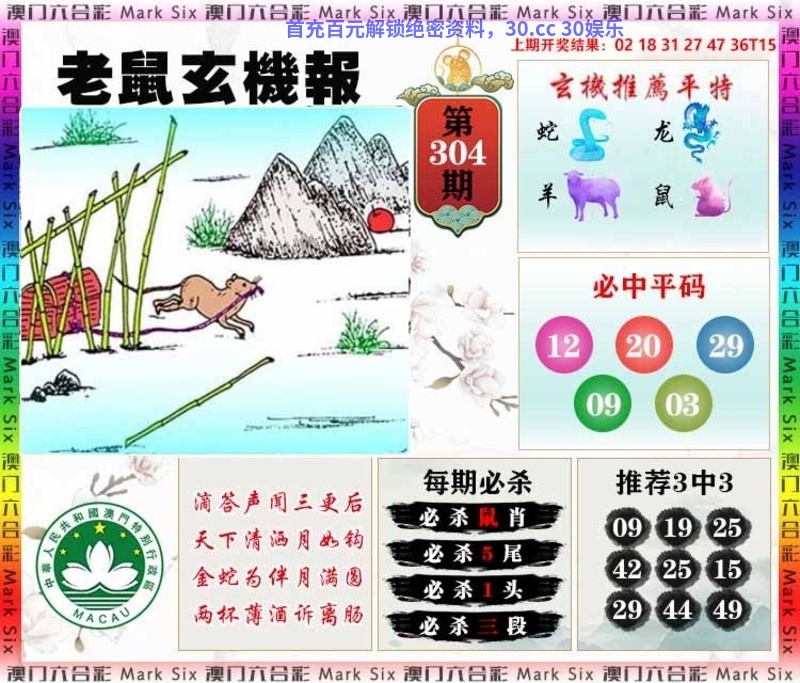 | 305期:天地两肖【地肖+马猴】开:鼠42准 |